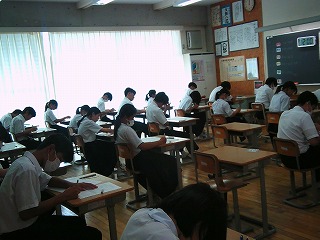 生徒たちは、期末テストに向け一生懸命勉強し、時間いっぱいまで問題に取り組みました。