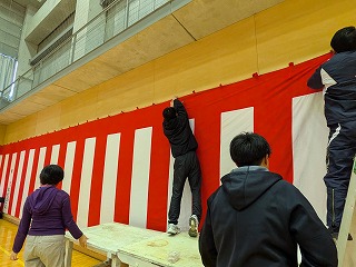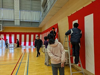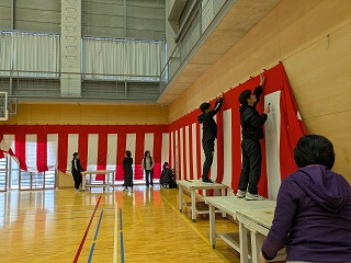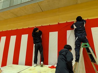 卒業式に向け、紅白幕を張りました。